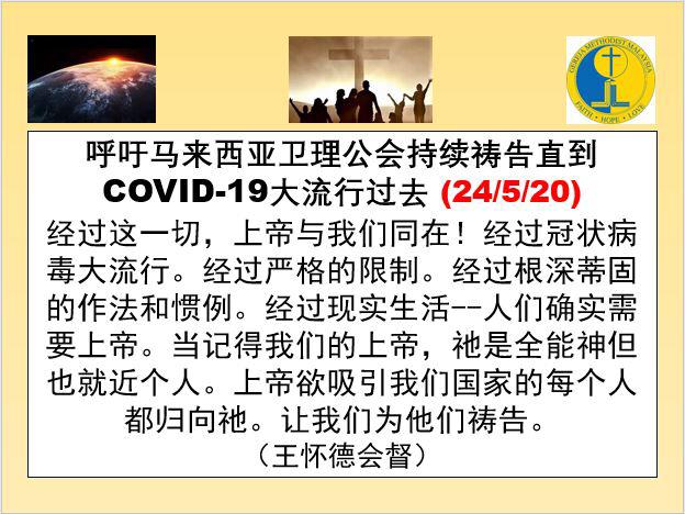 In addition, Bishop Dr Ong Hwai Teik has issued a call of continued prayer for the Covid 19 pandemic this Sunday.